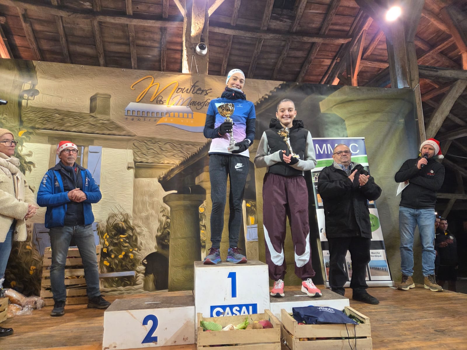 Superbe perf de la jeune Master Mélanie CALLEAU sur la Corrida nocturne de Moutiers les Mauxfaits (85) qui remporte ce trail urbain de 10km en 43’35 (25èmeau scratch), 2minutes devant l’athlète du club de Cholet Athlétisme Céline MARTIN !