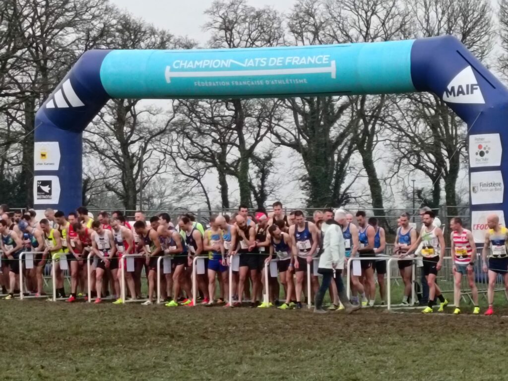 Cette fête nationale du cross country avait débutée tôt en matinée dès 9h00 sur le terrain des vielles charrues avec nos Masters qui souhaitaient , sous la houlette de Captain’FOULON , faire mieux par équipe qu’à CHALLANS l’an dernier avec une 11ème place … Sur un championnat de très haut niveau pour ces classes d’âge , emmené par un Gwénaël TALOUR (M2) , 85ème , en pleine forme au prix d’un effort régulier a hissé l’équipe en 9ème place à 34 points d’un statut d’équipe finaliste de ce championnat de France Master. Sylvain BARBE a pris la 112ème place , Maxime FEVRIER 119ème , Julien DUMONT 195ème , Tony FOULON l’ambianceur du groupe à cours de sensations fortes … mis à part ce jour là au micro de Patrick MONTEL ! (Vidéo en cours …) a pris une honorable 214ème place et notre marathonien Ludovic LEMONNIER plus à l’aise sur l’asphalte que dans la boue collante a terminé 289ème sur 356 athlètes classés…
