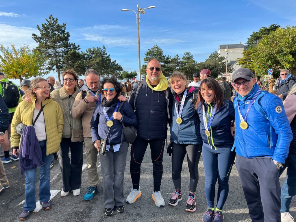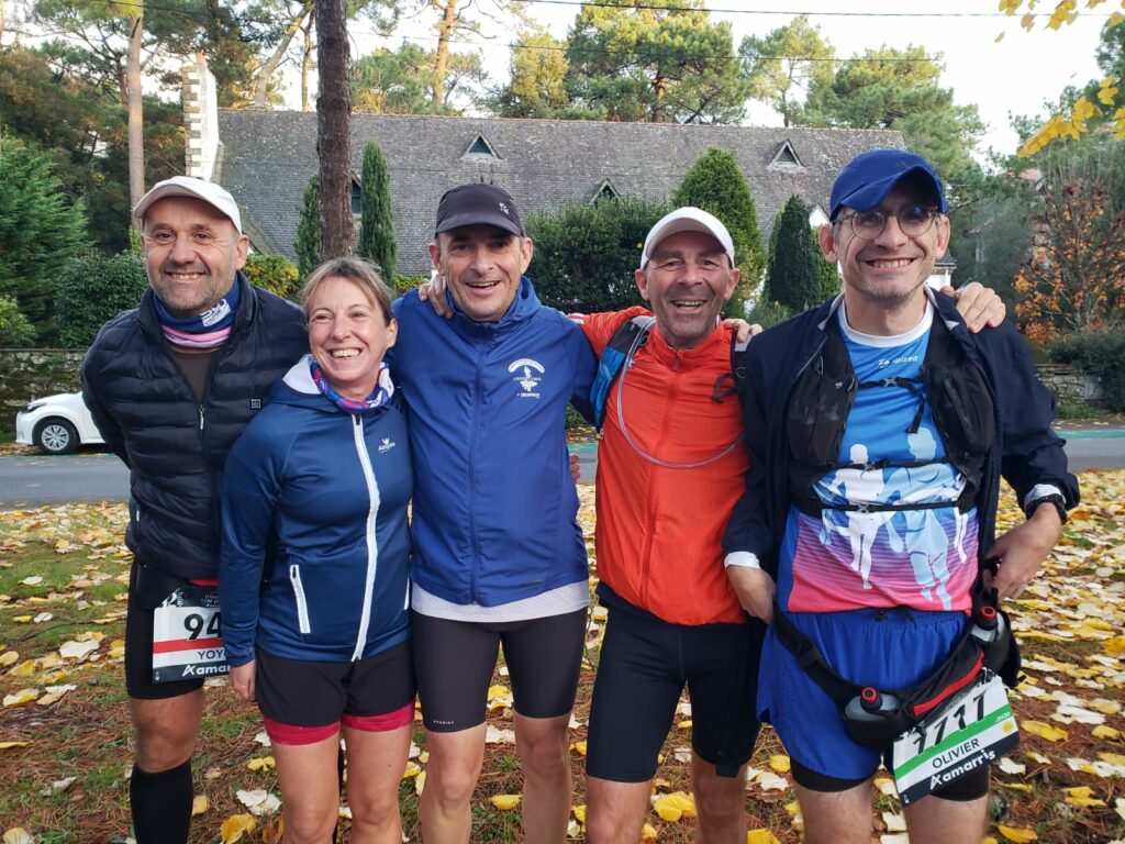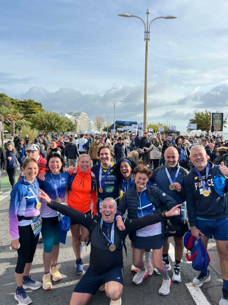 « Je n en reviens pas … je ne pouvais pas rêver mieux pour mon premier marathon. Les conditions étaient plutôt bonnes, juste du vent entre le 26 et 38ème km le long de la côte sauvage. Je visais moins de 3h donc sur une base de 4’15 au km et en fait je suis partie un peu plus vite que prévu… Je me suis sentie vraiment bien jusqu’au 32eme km et après j’ai fait comme j’ai pu pour tenir. Mais c’est passé super vite entre la gestion de l’allure et les ravitaillements que je découvrais… Et que dire du parcours, de toute beauté ! Magali et Philippe m’ont super bien accompagné, préparé et rassuré. Je me sens privilégiée et je suis très fière de cette performance qui pour moi est aussi celle de toute une équipe Magali, Philippe et le groupe des filles avec qui j’ai plaisir à m’entraîner.«