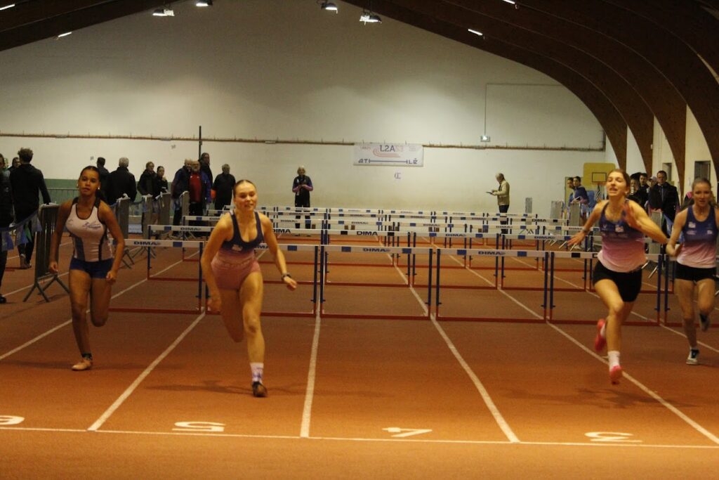 Chez les féminines, C’est la junior Noémie KIEFFER qui réalise la meilleure perf du Club sur 60 m haies en série avec un chrono de 9″71 (804 points) alors que la cadette Cléa BOCQUIER bat son record perso en remportant sa série sur 60 m en 8″70 (699 points). la cadette Lou Anne MORVAN réalise 10″38 en série du 60 m haies.