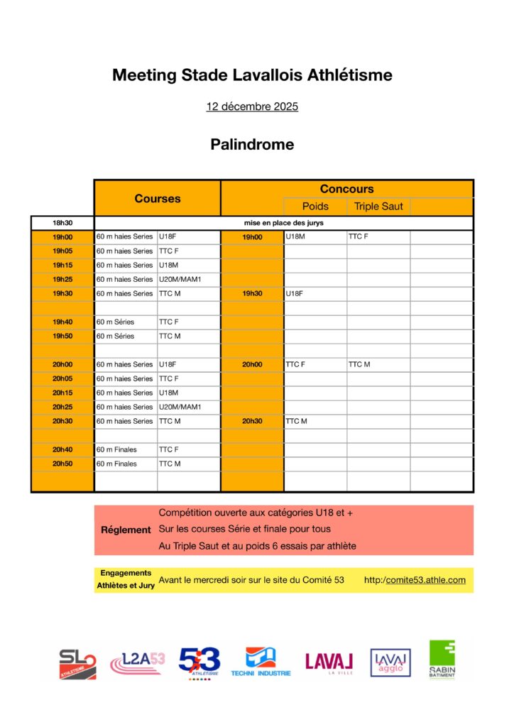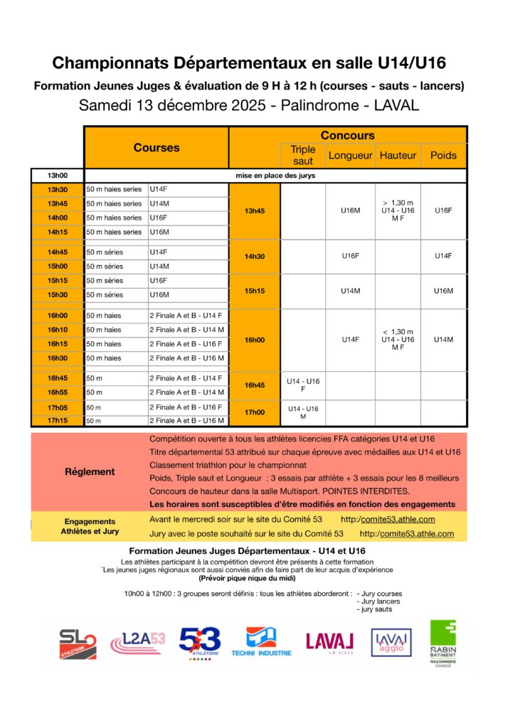 Quelques belles perfs pour une découverte de l’indoor pour pas mal de jeunes athlètes . Parmi les perfs à noter pour le L2A53 la 2ème place en FINALE 1 du 60m plat pour Ibrahima BARRY en 7″11 (1er des séries 7″09 –Record personnel égalé-894 points). Résultat similaire pour le junior Mathis CARTIER qui égale son record perso en série en 7″51 et remporte le concours de poids avec un jet à 10m05.