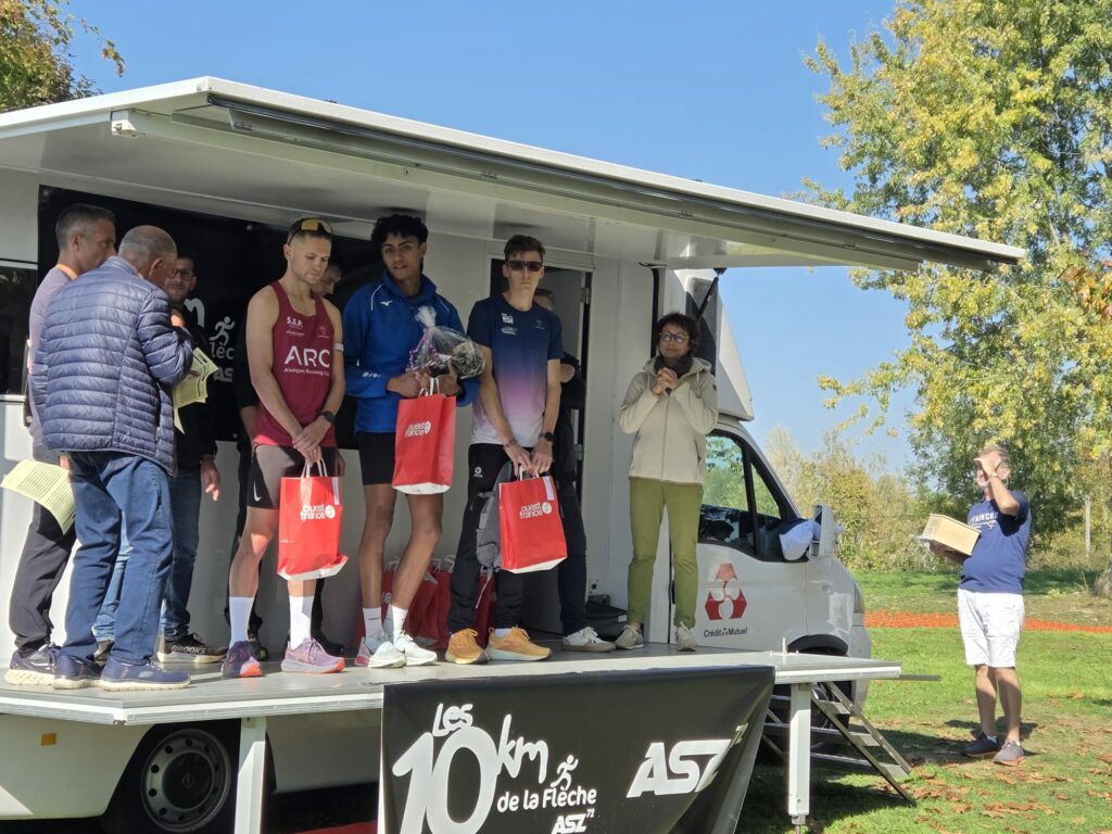 Sur le 1Okm , l’excellente surprise est venue d’un certain Charlélie APRIL, Master 0 et néo-Stadiste (Licence L2A53/SLA en cours …) déjà second du 10km des écluses de la Mayenne en 30’23 juste derrière Bérenger CHAUVIN. Cet athlète sarthois originaire de Brain sur Gée et ex athlète de Monfort le Gesnois il y a 2 ans était entraîné à l’époque par un certain Laurent PLUMAIL , un ex stadiste de haut niveau bien connu en Mayenne !