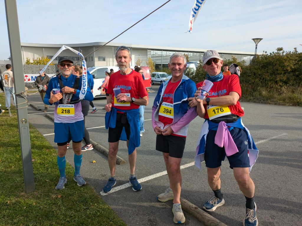 Chez les hommes , 3ème place du Master 2 Julien DUMONT en pleine forme en ce début de saison avec un joli Record Perso à la clé d’ 1h13’56 . Maxime FEVRIER en terminant 4ème au scratch l’emporte en catégorie Master 1 avec un chrono d’1h14’12.