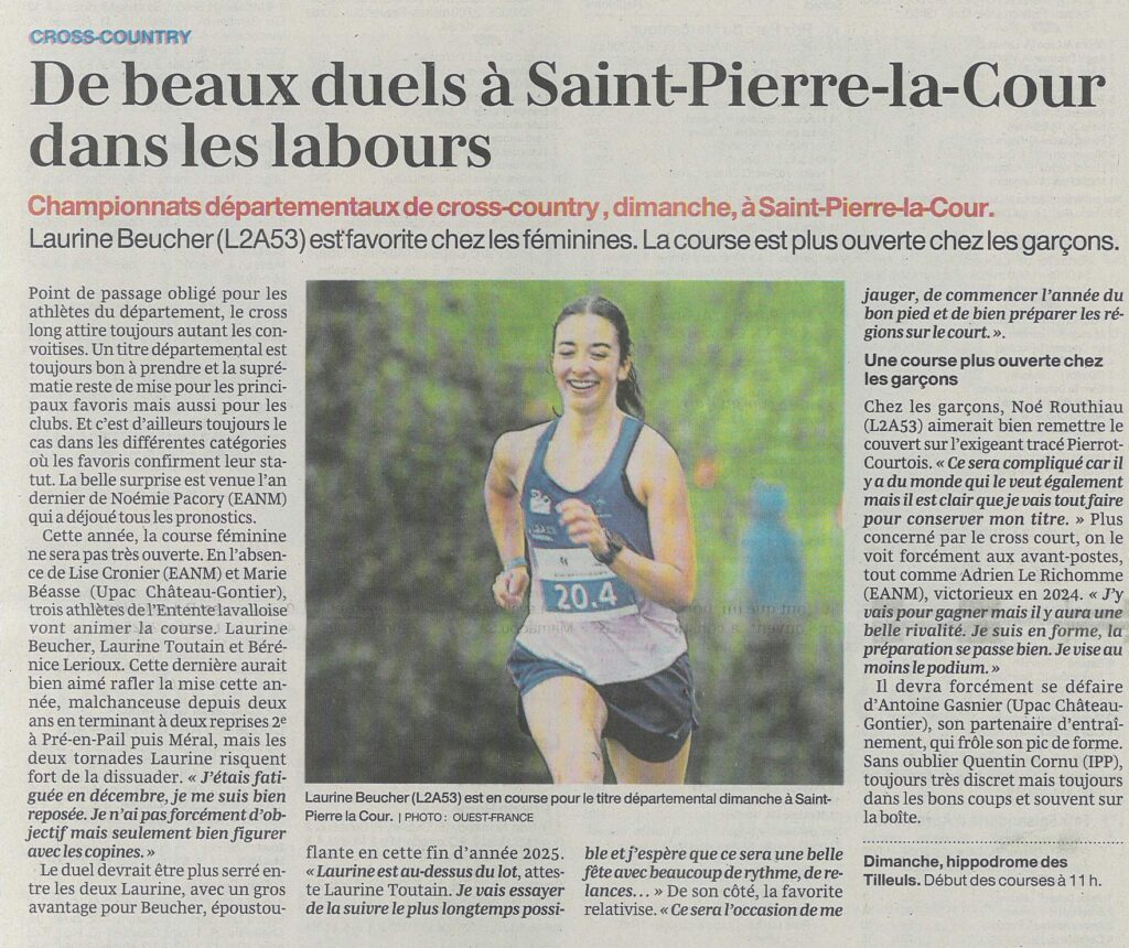 Le L2A53 en ordre de bataille pour affronter les labours de l’Hippodrome de St pierre la Cour lors des Départementaux de cross-country !