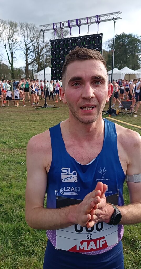Bérenger CHAUVIN après sa superbe perf du Championnat en FRANCE de cross country à CARHAIX parmi les 10 meilleurs seniors français souhaitait conclure brillamment cette superbe saison hivernale. C’est chose faite depuis ce dimanche matin en banlieue bordelaise malgré des conditions atmosphériques compliquées avec une 3ème place en 29’27 sur le 10km National de ST MEDARD EN JALLES (LABEL OR FFA) remporté par l’athlète de l’US TALENCE Josselin BARRELON VERNAY en 29’23 (13 athlètes classés en moins de 30mn !). C’est évidemment un Record perso pour Bérenger CHAUVIN, pour le plus grand plaisir de son COACH Didier LELIEVRE, qui conclu cette saison hivernale de la meilleure façon qui soit (Ex RP à Château Gontier le 29-12-2026 en 30’08). L’équipe de demi-fond du L2A53/SLA aura réussi une saison hivernale assez exceptionnelle avec cette perf de Bérenger CHAUVIN sur 10 km hors stade à seulement 5 secondes du Record de Club établi par le Master Néo Stadiste Charlélie APRIL le 11 janvier dernier à VALENCE en 29’22.