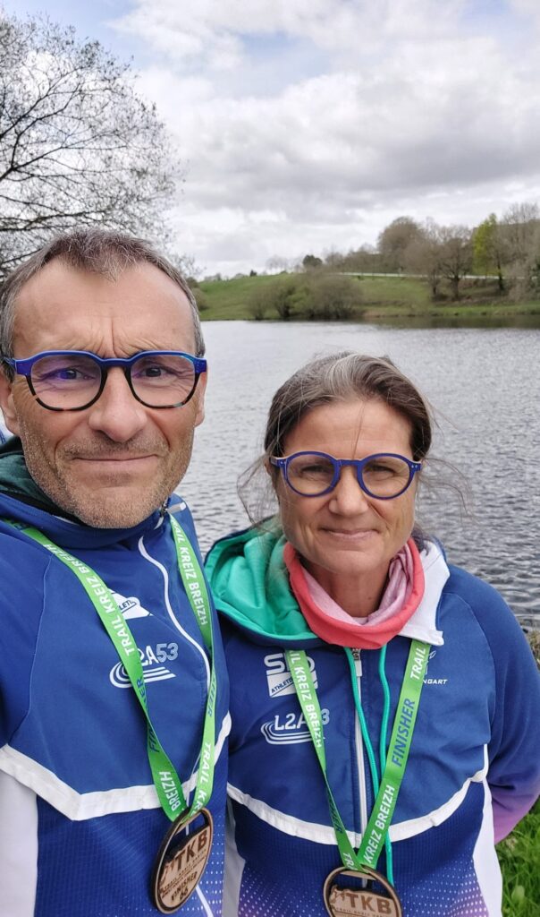 Et un ultra TRAIL de plus pour notre Coach spécialiste des longues distances , Fred MORIN et son épouse Sandrine en terre bretonne ce samedi sur le très sélectif TKB de PONTIVY . Cela ne s’est pas totalement passé comme prévu pour Fred qui a dû baisser pavillon sur le parcours de 69km (avec 2000m de Dénivelé positif) en réalisant les 40 derniers km en mode « tortue » la faute à une vilaine contracture. Au final ce sera une 240ème place en 9h54 pour Fred sur 360 athlètes classés. Sur l’épreuve de 42km (1000m de D+), Sandrine MORIN s’est classée 46ème féminine en 6h25.